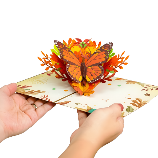 Regular price From $13.99Regular priceUnit price / per$13.99Sale price From $13.99The Paper Love Butterfly Pop-Up Card is a charming way to celebrate Fall, Halloween, Thanksgiving, or any special moment. Measuring 5” x 7”, it opens to reveal an intricate 3D butterfly on a leafy base, handcrafted with precision. Designed to fold flat and spring into life, it brings a lovely surprise to the recipient. A removable tag is included for personal messages, along with a premium sealable envelope for mailing.