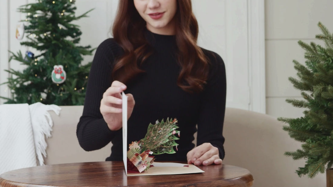 Our enchanting 3D Pop Up Christmas Tree card from the Keepsake Collection reveals a stunning surprise: the beautiful, detailed tree is fully detachable. It's a gift within a gift. The recipient can easily remove the 3D tree from the card to display it on a mantel, desk, or shelf as a cherished standalone holiday decoration.
